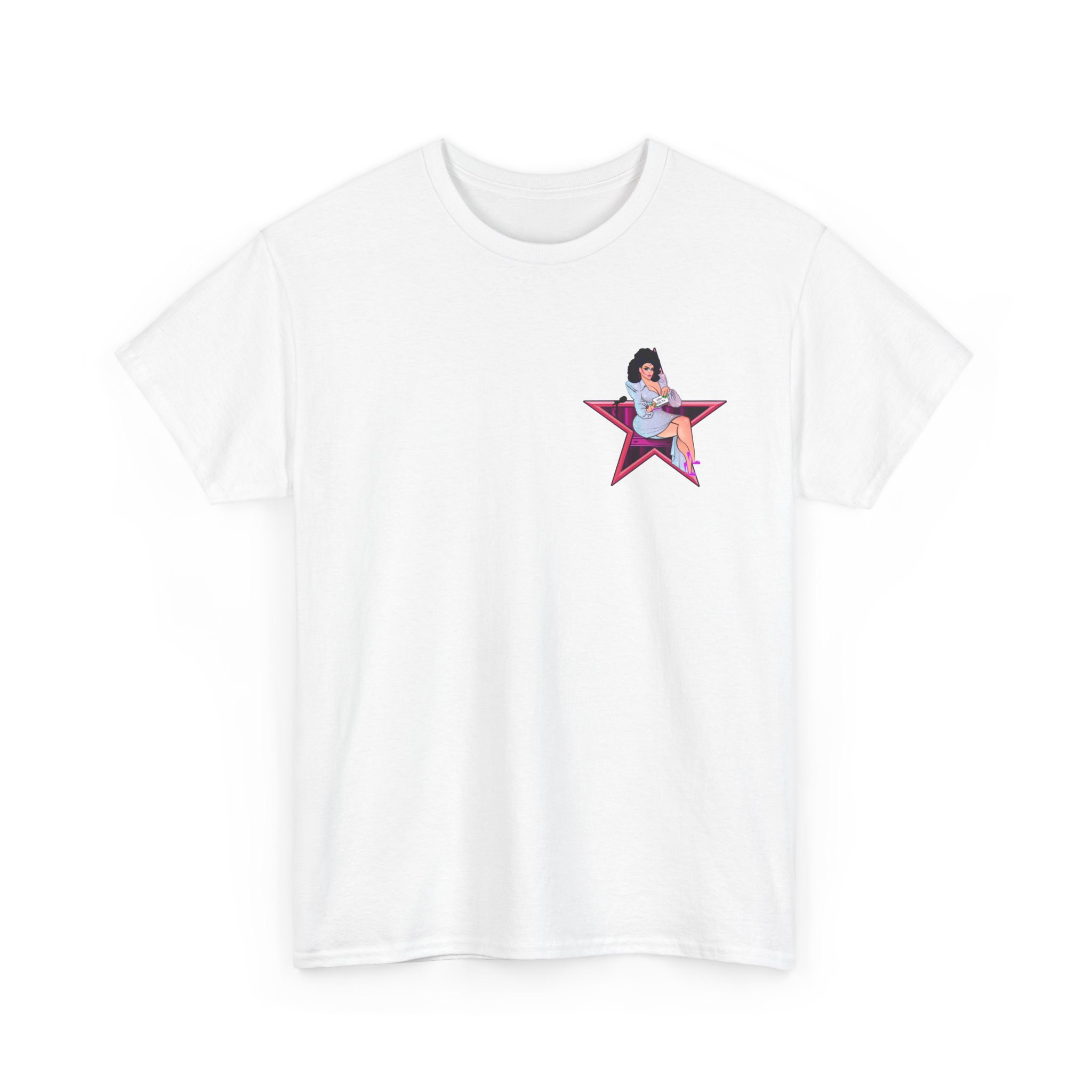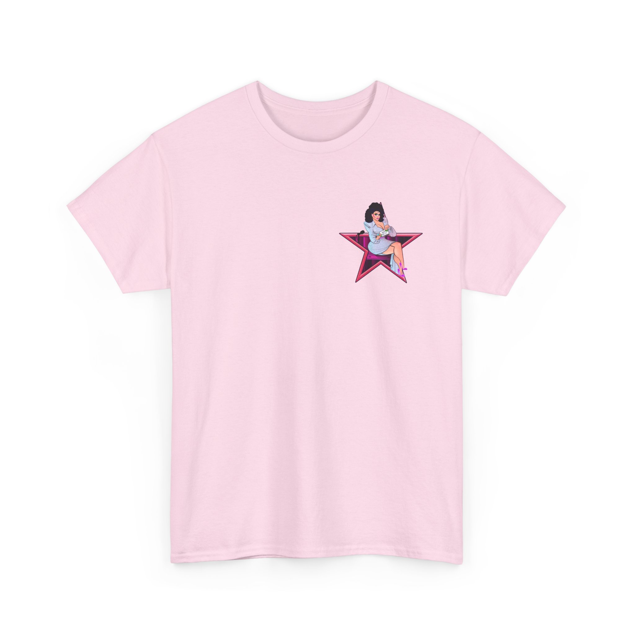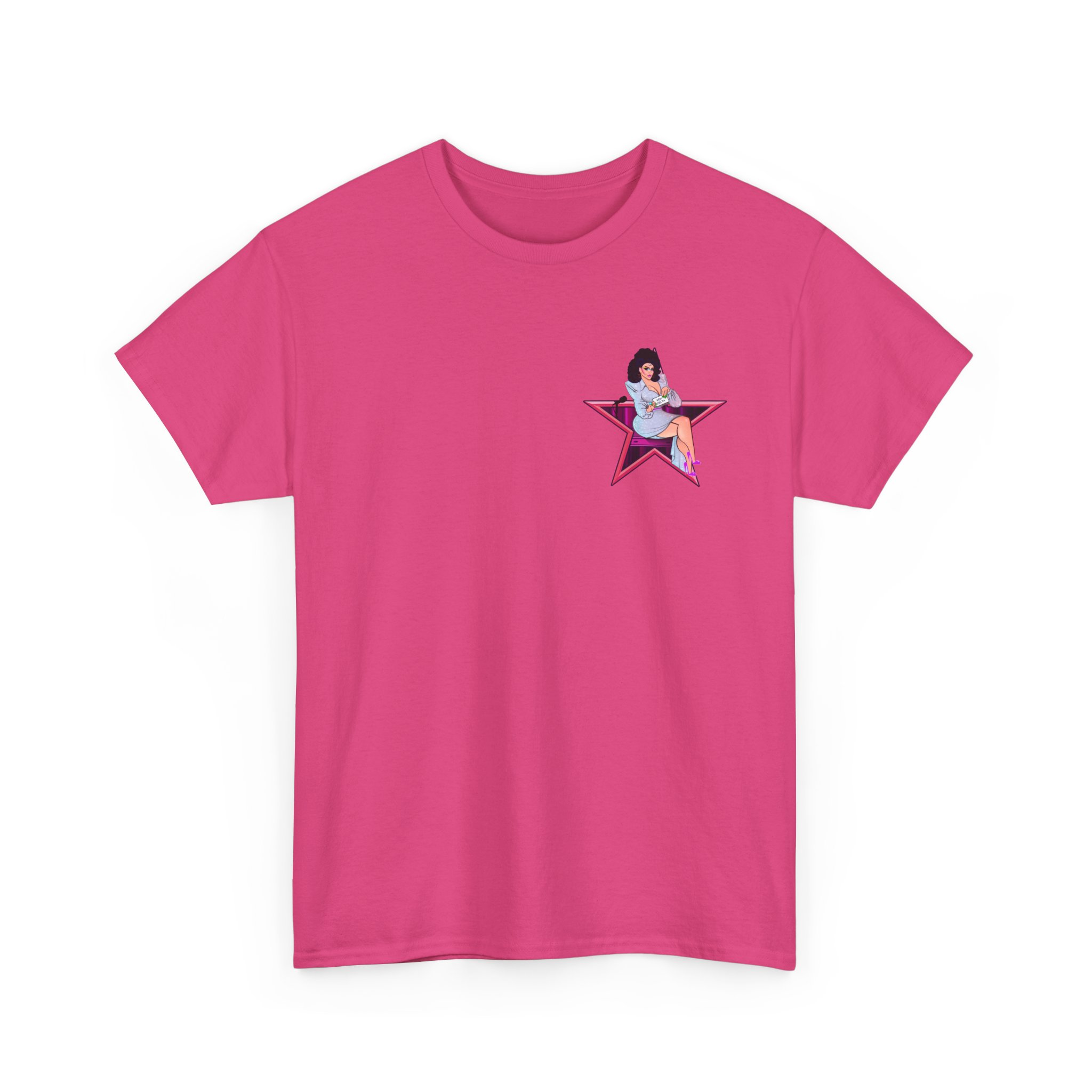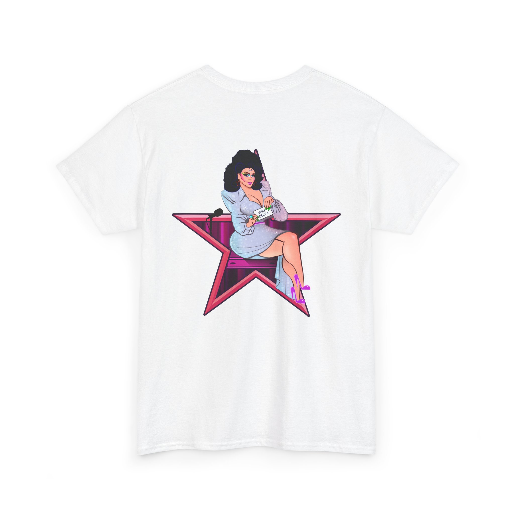 Elevate your wardrobe with this thoughtfully designed unisex t-shirt, a sartorial homage to the Very Delta podcast and its inimitable host, Delta Work. Featuring a striking star motif with Delta seated at a desk, clutching her iconic notecards—symbolizing the spontaneous yet incisive commentary that defines the show—this shirt is a must-have for aficionados of intellectual humor, queer media, and pop culture critique.